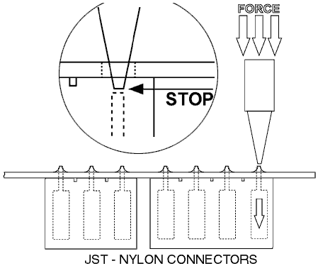 Löd eller crimp fast ledarna ovan i hylsorna, och för sedan in hylsorna i nylonkontakten enligt den ordning som bilden ovan visar.